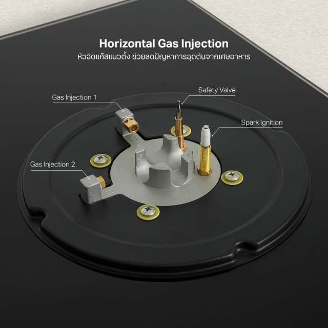 ระบบการทำงาน: | หัวกระจายไฟและแผ่นปิดหัวเตาผลิตจากทองเหลือง ระบบท่อส่งแก๊ส และผสมอากาศด้านบน ตะแกรงรองภาชนะชนิดเหล็กหล่อ ระบบจุดติดด้วยแบตเตอรี่ ระบบตัดแก๊สอัตโนมัติ |