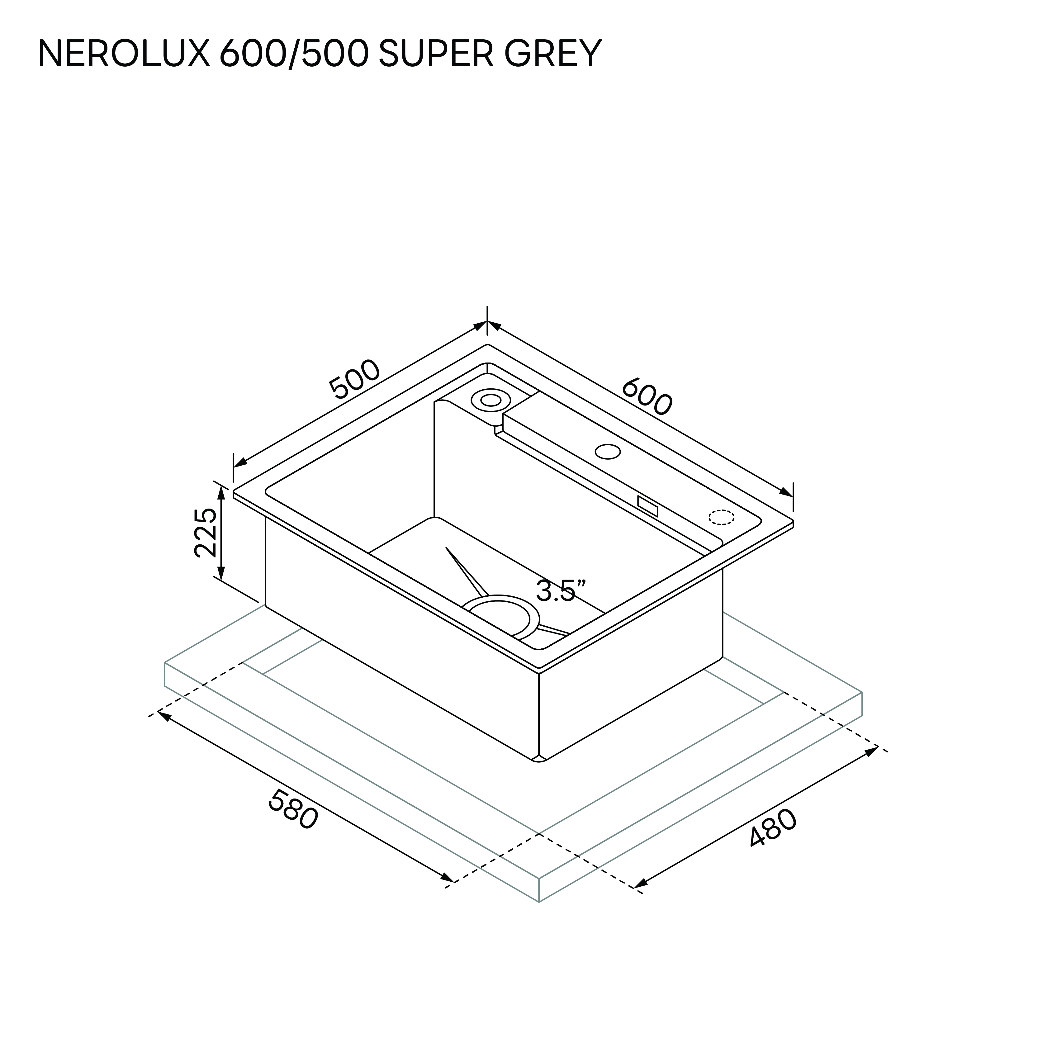 ซิงค์ล้างจาน หินแกรนิตสังเคราะห์ รุ่น NEROLUX 600/500 SUPER GREY