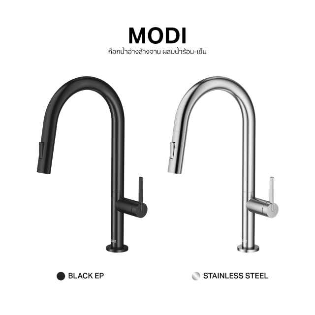 หัวก๊อกน้ำสามารถดึงออกได้ยาวถึว 50 ซม. เพื่อเพิ่มประสิทธิภาพในการล้างจาน